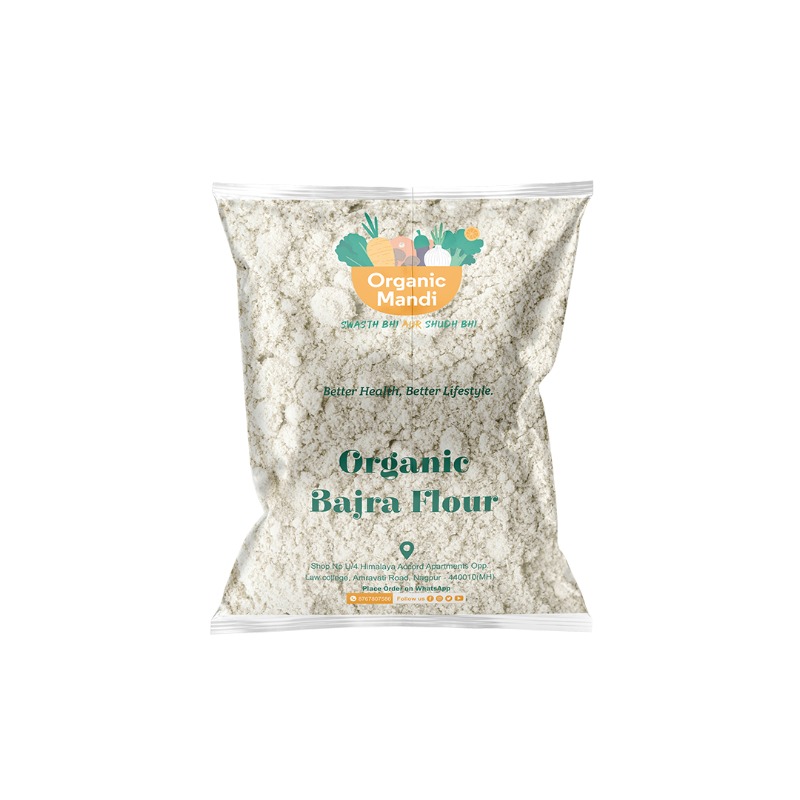 Bajra flour is made by grinding the Bajra (pearl millet) grains. It is grayish in color and has nutty flavor. Bajra flour is an excellent source of iron, protein, folic acid and fibre that keeps complex ailments like anemia, constipation, obesity in check and flushes out all toxins